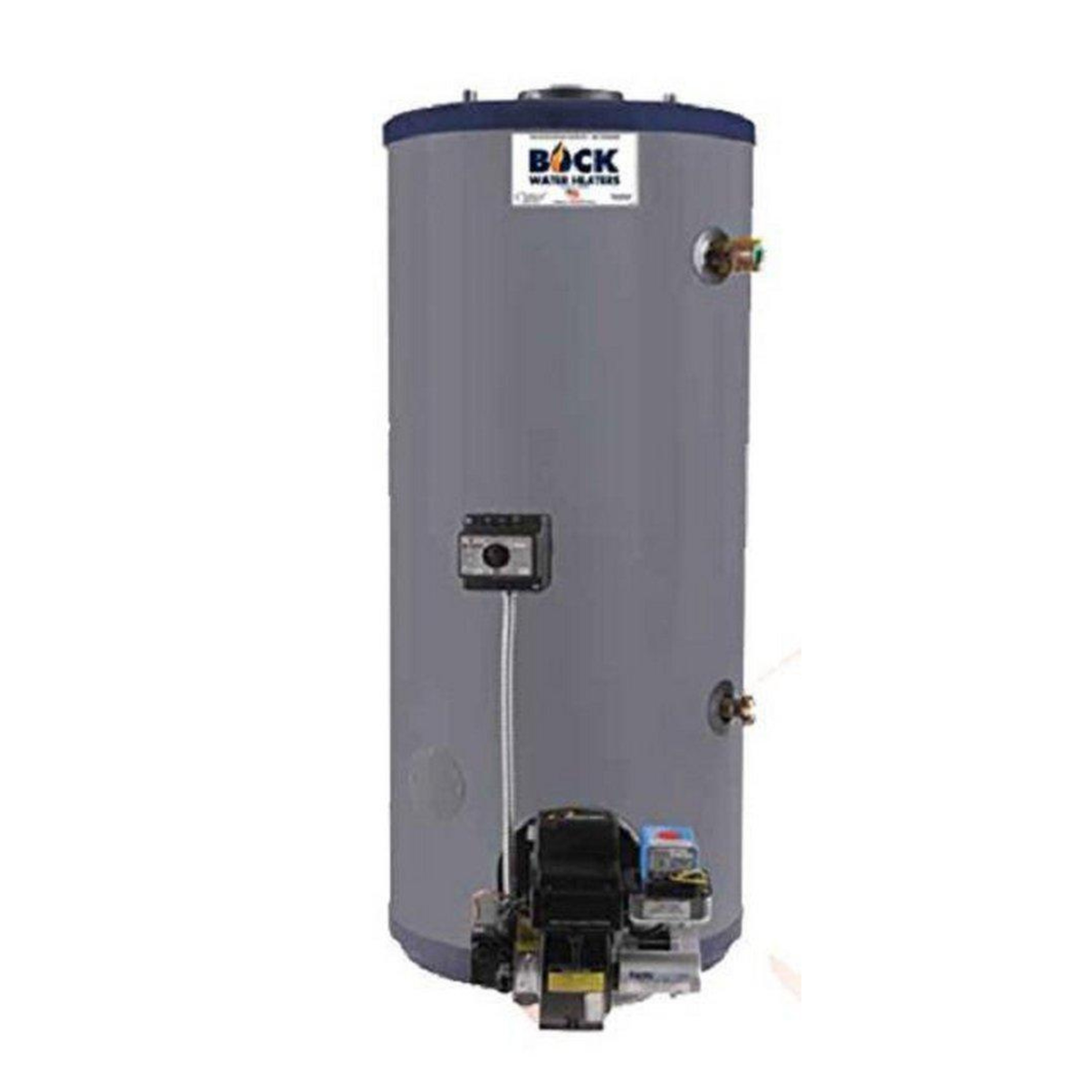 The BOCK 50E Tall Residential Water Heater is a 50-gallon oil-fired unit featuring a glass-lined steel tank, patented Turboflue® heat exchanger, and up to 152,000 BTU input—delivering high-efficiency hot water for large households. Burner sold separately.